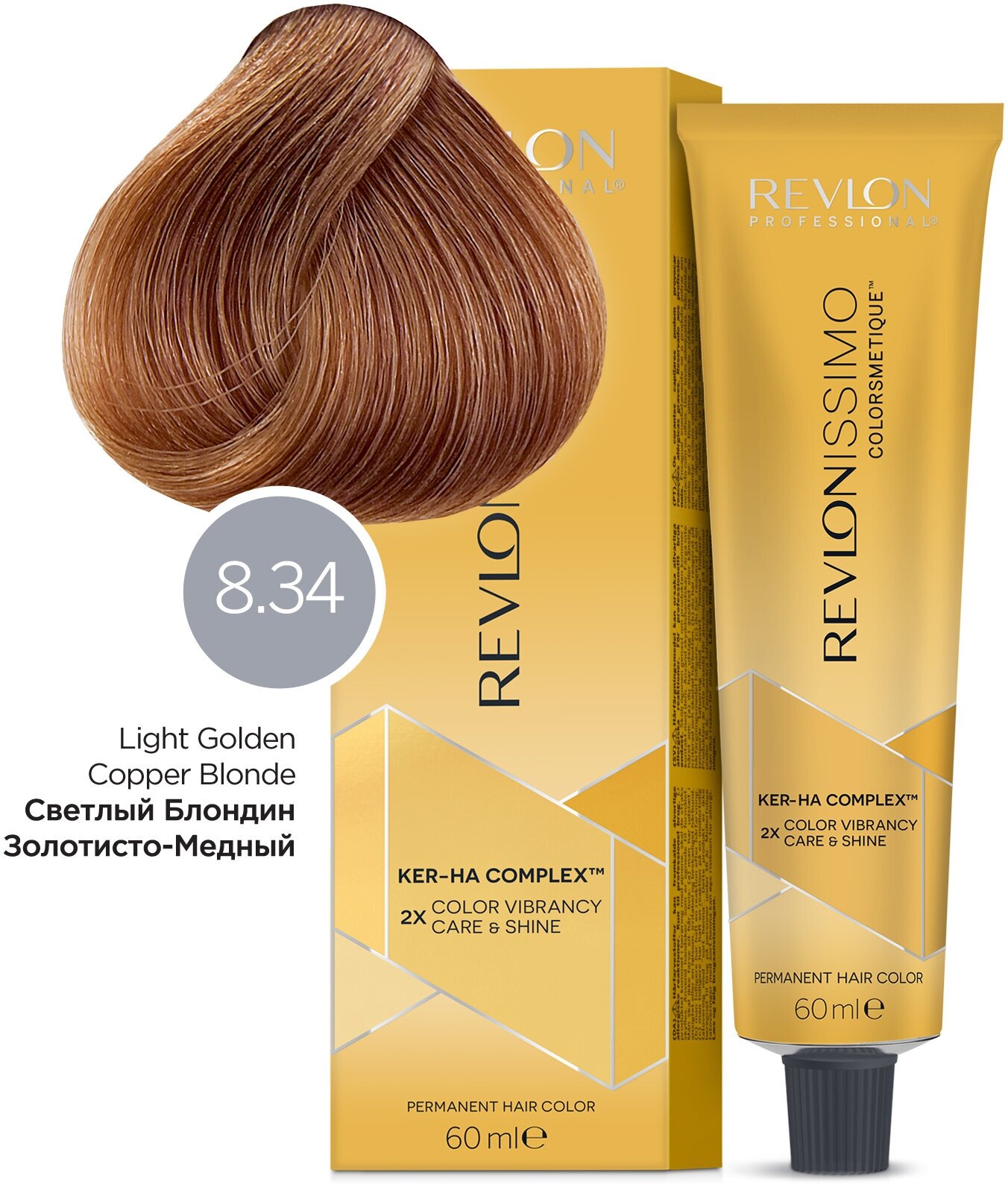 Краска для волос Revlon Professional Coloring Hair Revlonissimo Colorsmetique High CoverAge (HC) Color Shine, Стойкий перманентный краситель. Перманентный Краситель для Окрашивания Волос с высоким и Очень высоким Процентом Седины, HC8.34