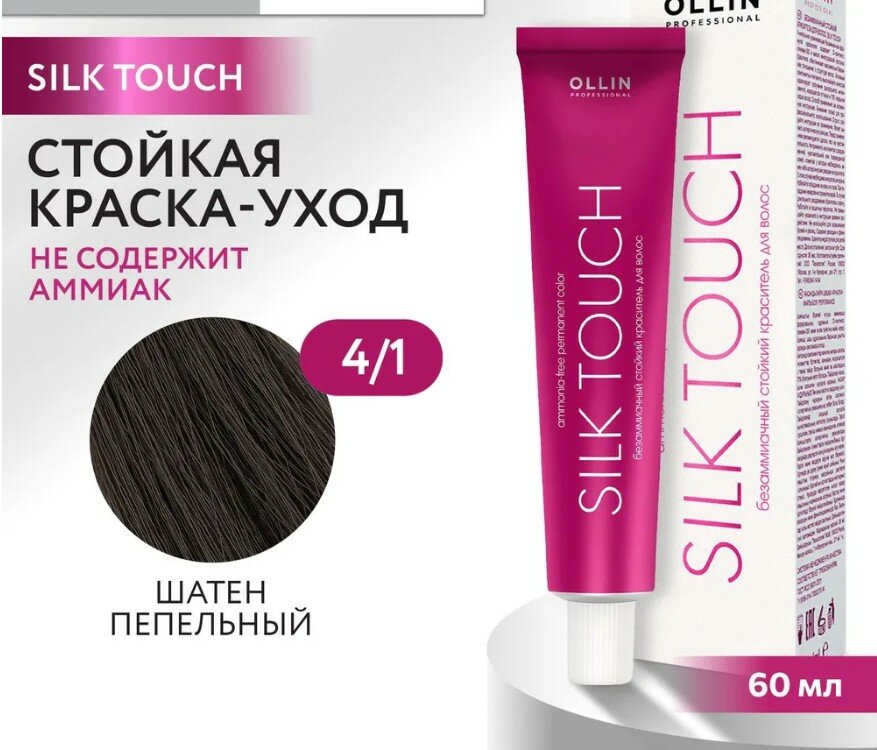 Купить Ollin Silk Touch крем-краска для волос 4/1 шатен пепельный 60мл