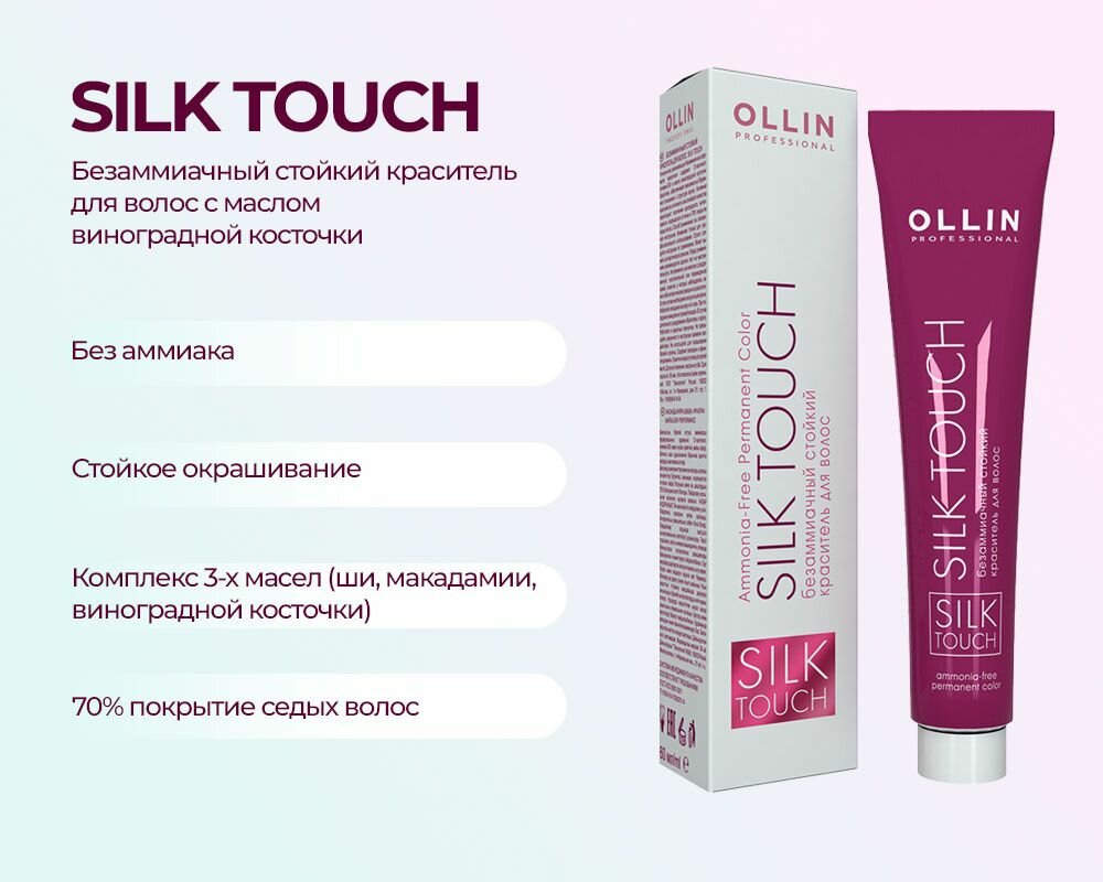 OLLIN, SILK TOUCH, Безаммиачный стойкий краситель для волос№10/0, светлый блондин, 60 мл