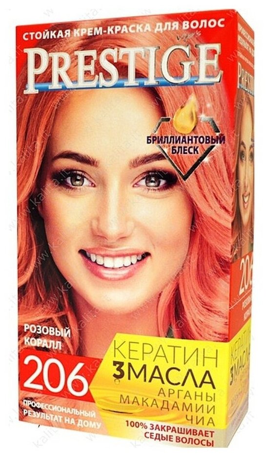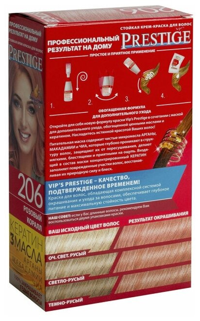 VIP's Prestige Бриллиантовый блеск стойкая крем-краска для волос, 206 розовый коралл