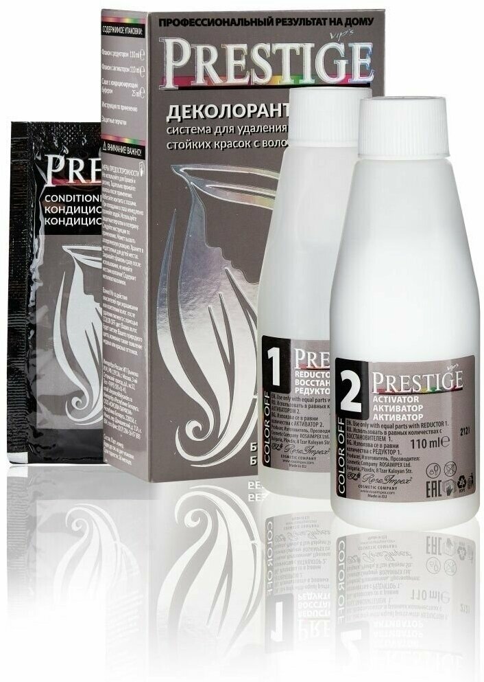 Система для удаления стойких красок с волос VIP'S Prestige деколорант COLOR OFF (редуктор 110мл, активатор 110мл, кондиц. буфер 25мл) интересное:
