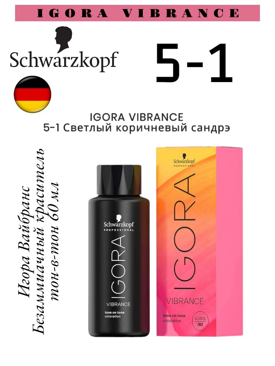 Купить Schwarzkopf Igora Vibrance краситель, 5-1 Светло коричневый сандрэ 60 мл. Игора Вайбранс Schwarzkopf Professional