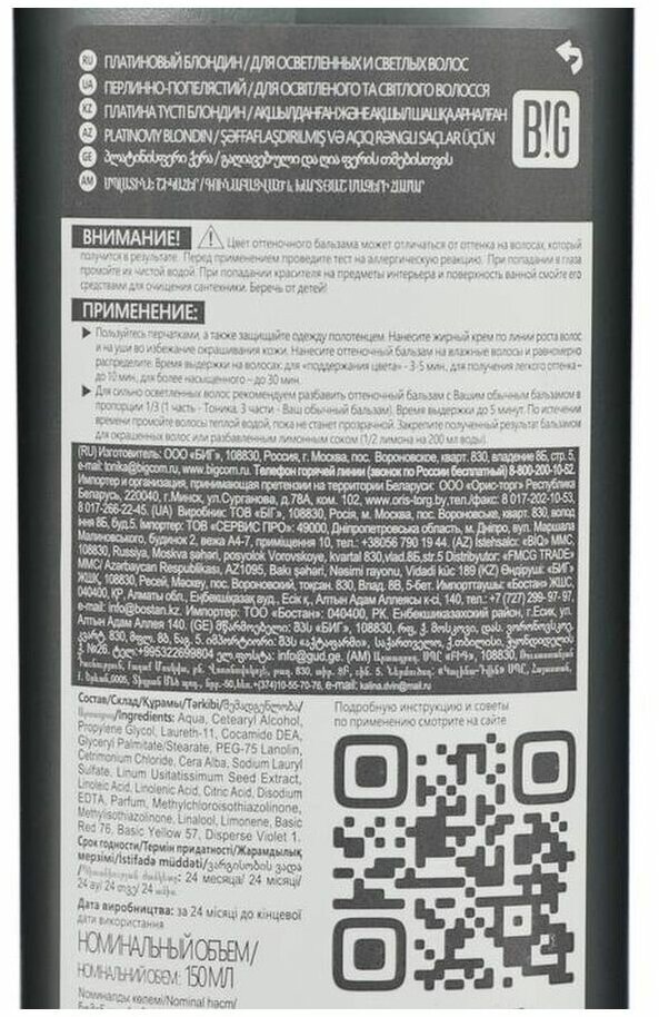 Тоника 9.1. Оттеночный бальзам платиновый блондин ,150мл для блонда и светлых интересное: