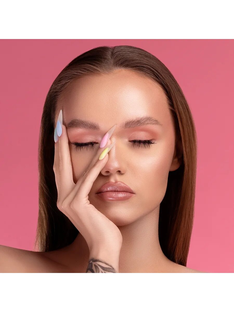 | Способ применения | Подготовьте ногти: снимите глянец мягким бафом, обезжирьте, нанесите праймер. С помощью кисти тонким слоем втирающим движением нанесите гель, заполимеризуйте. Выложите тонкую подложку нужной длины, формируя длину и форму будущего ногтя. Кистью нанесите материал на всю поверхность ногтя, создавая наибольшую высоту в стрессовой зоне и уменьшая ее к боковым сторонам и кутикуле, заполимеризуйте. Удалите липкий слой безворсовой салфеткой и клинсером. Нанесите финишный гель, удалите липкий слой, если это требуется. |