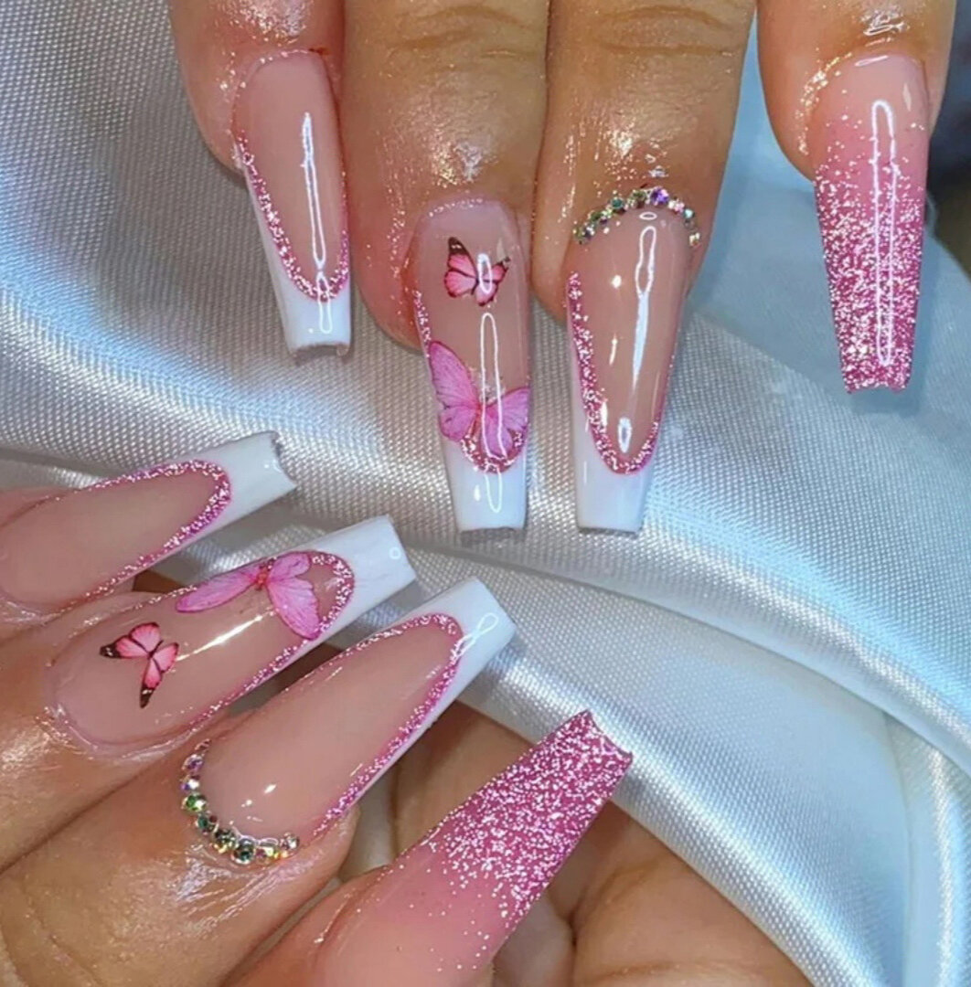 Накладные ногти с клеем и дизайном