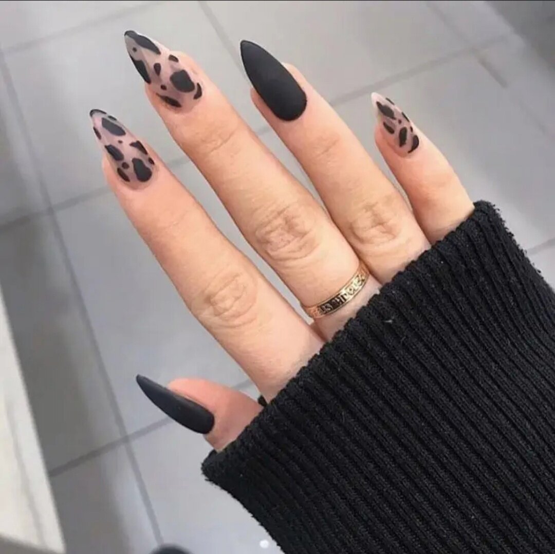 Комплект накладных ногтей NAILS с дизайном + клеевые стикеры 24шт, "Чёрно-белые"