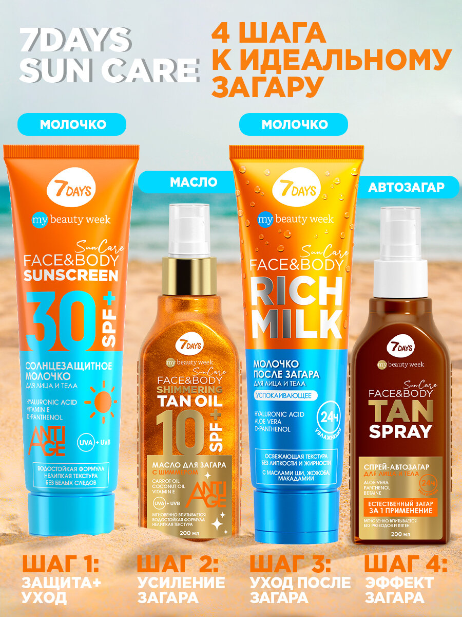 Молочко солнцезащитное для лица и тела 7 DAYS Sunscreen SPF 30+ 200 мл интересное: