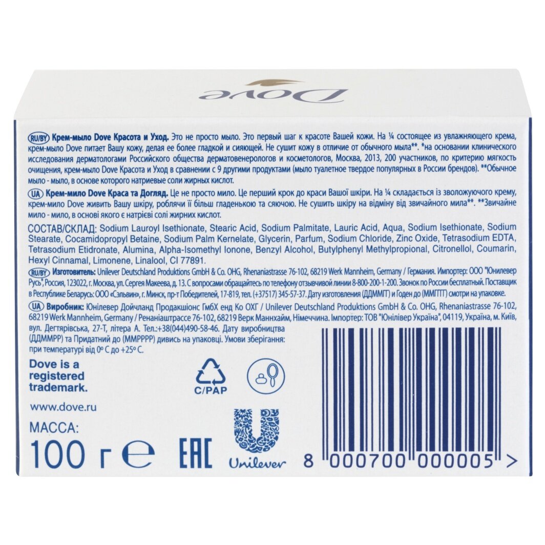 Крем-мыло кусковое Dove Красота и уход, 100 г