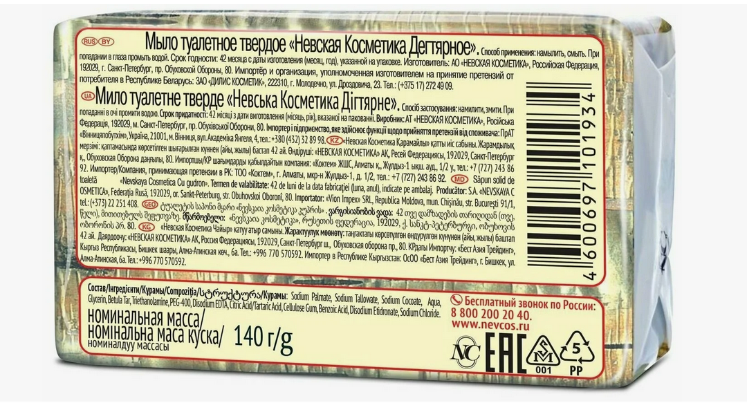 Туалетное мыло невская косметика дегтярное 140 г (набор 4 шт)