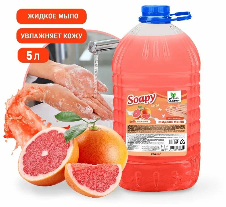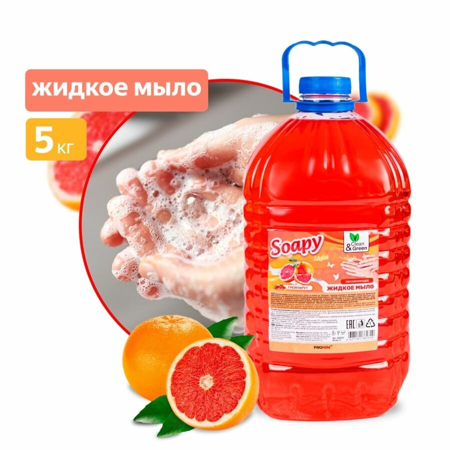 Жидкое мыло "Soapy" Light "Грейпфрут" 5 л. Clean&Green CG8231 интересное: