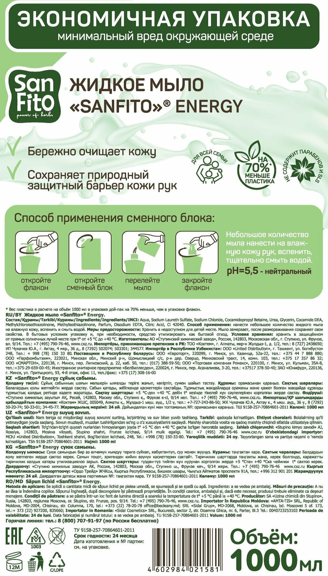 SANFITO Жидкое мыло Energy. Сила луговых трав, 1000 мл