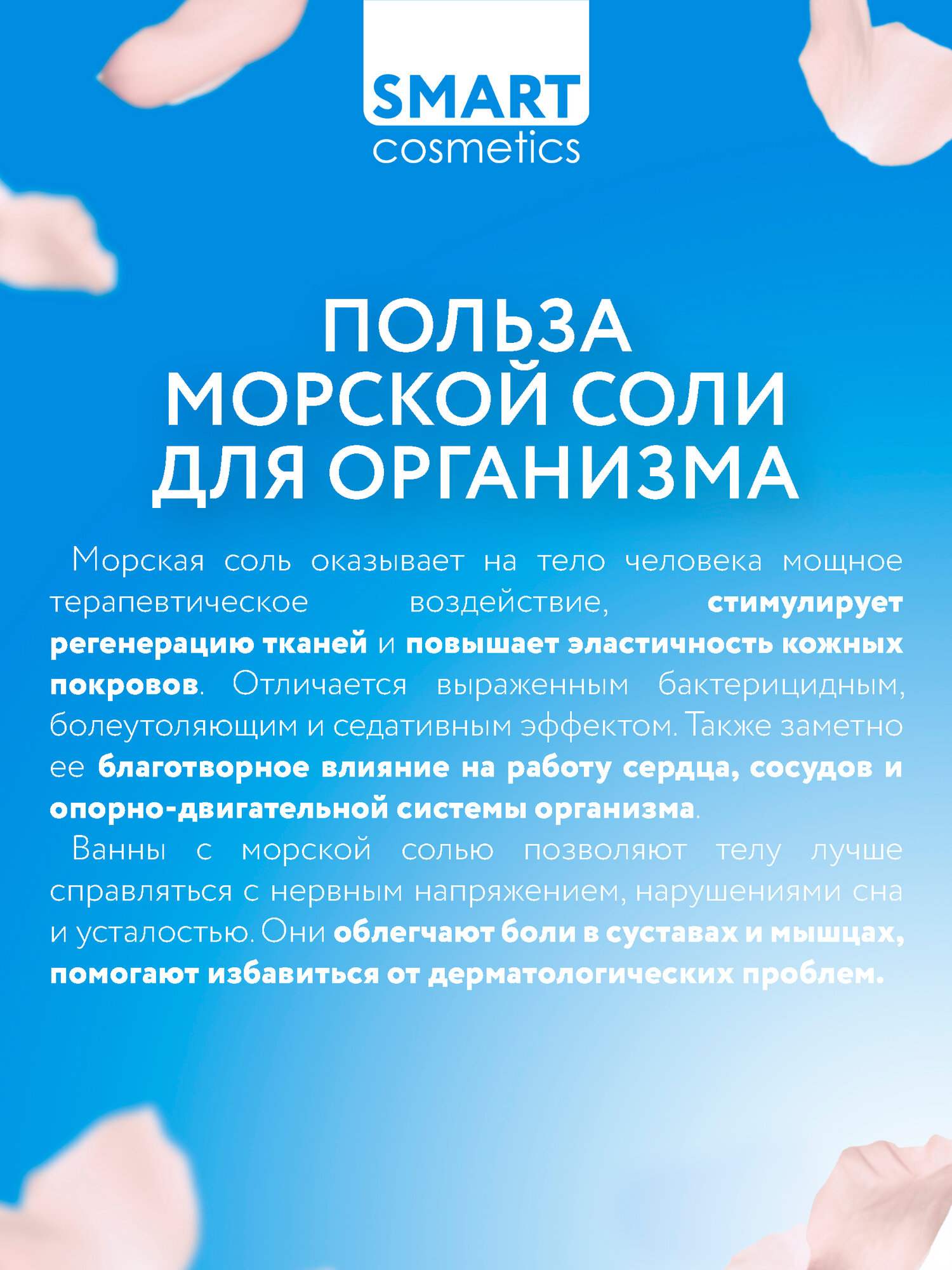 Морская соль для ванн, 1 кг/Smart Cosmetics/Морская натуральная соль/Соль для ванны/Очищение и регенерация кожи/Выведение токсинов