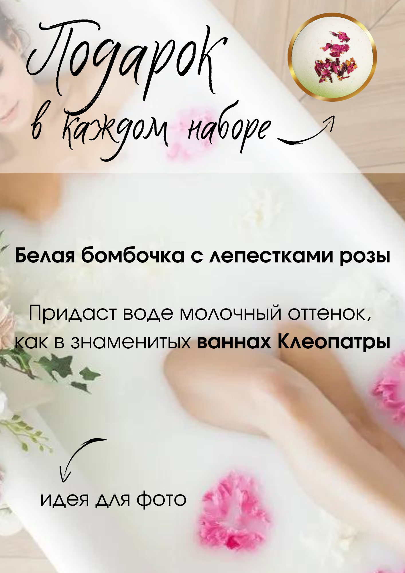 СПА набор: белые бомбочки с цветами и увлажняющее молочко для ванны