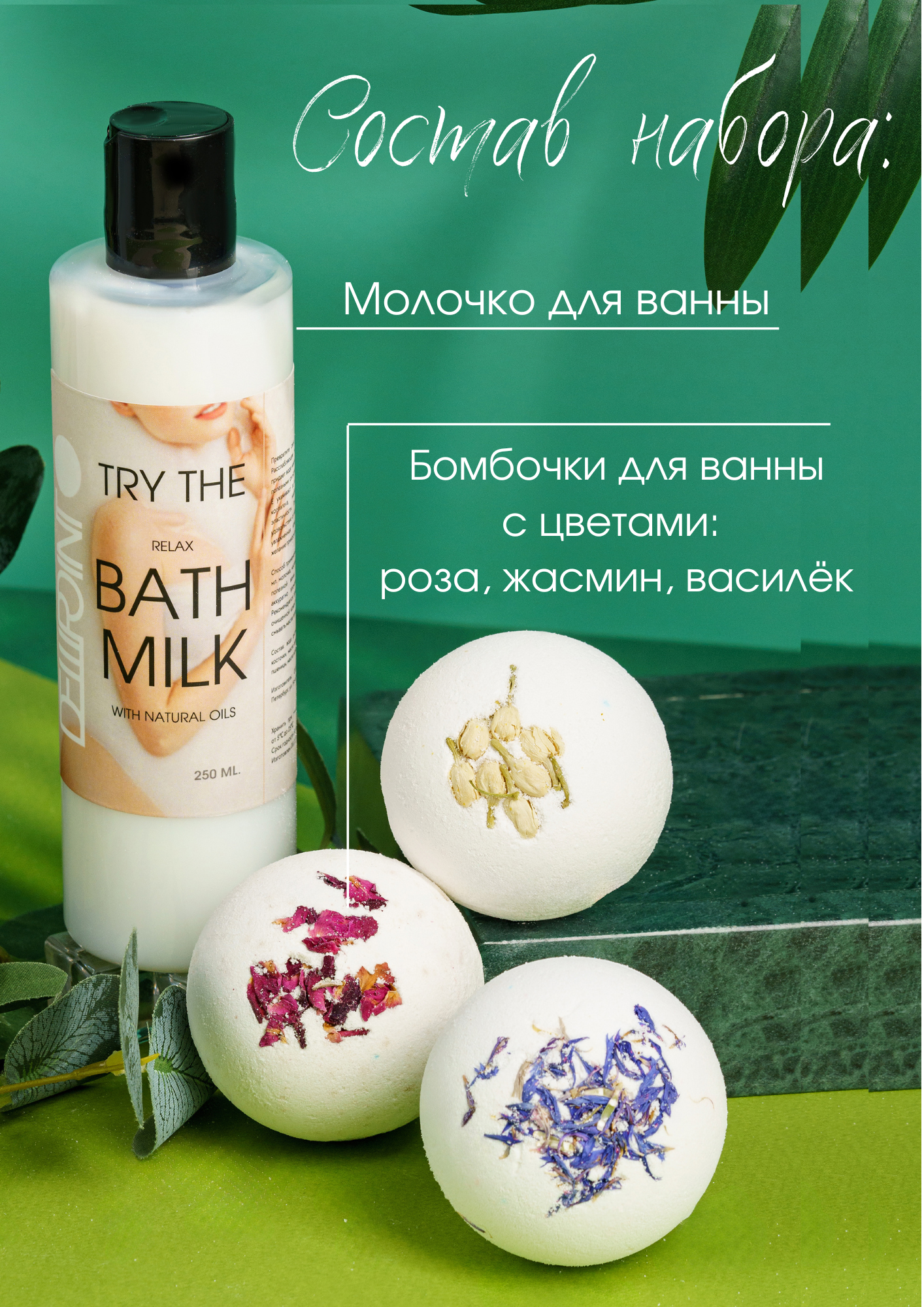СПА набор: белые бомбочки с цветами и увлажняющее молочко для ванны