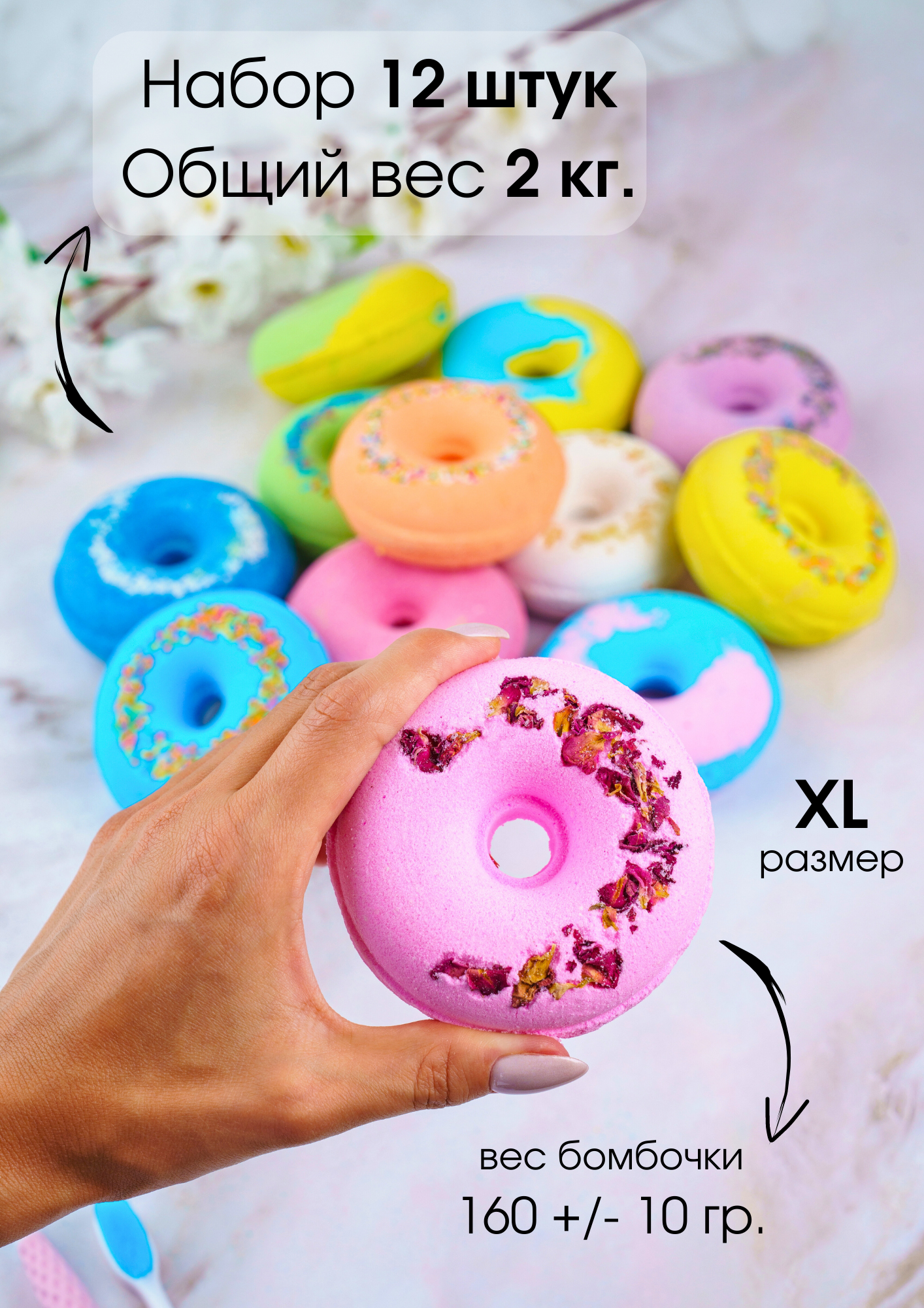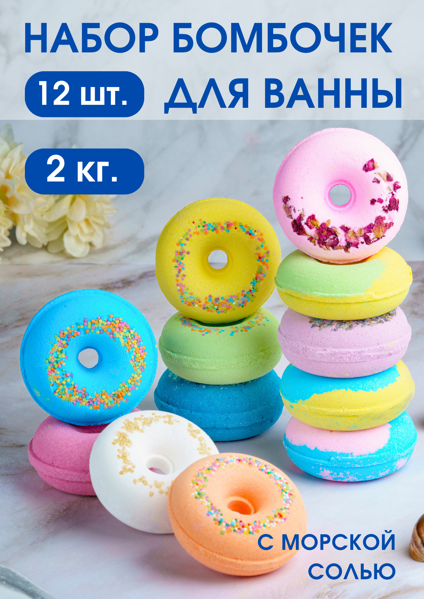 Натуральные Бомбочки для ванны пончики большой набор 12 штук.