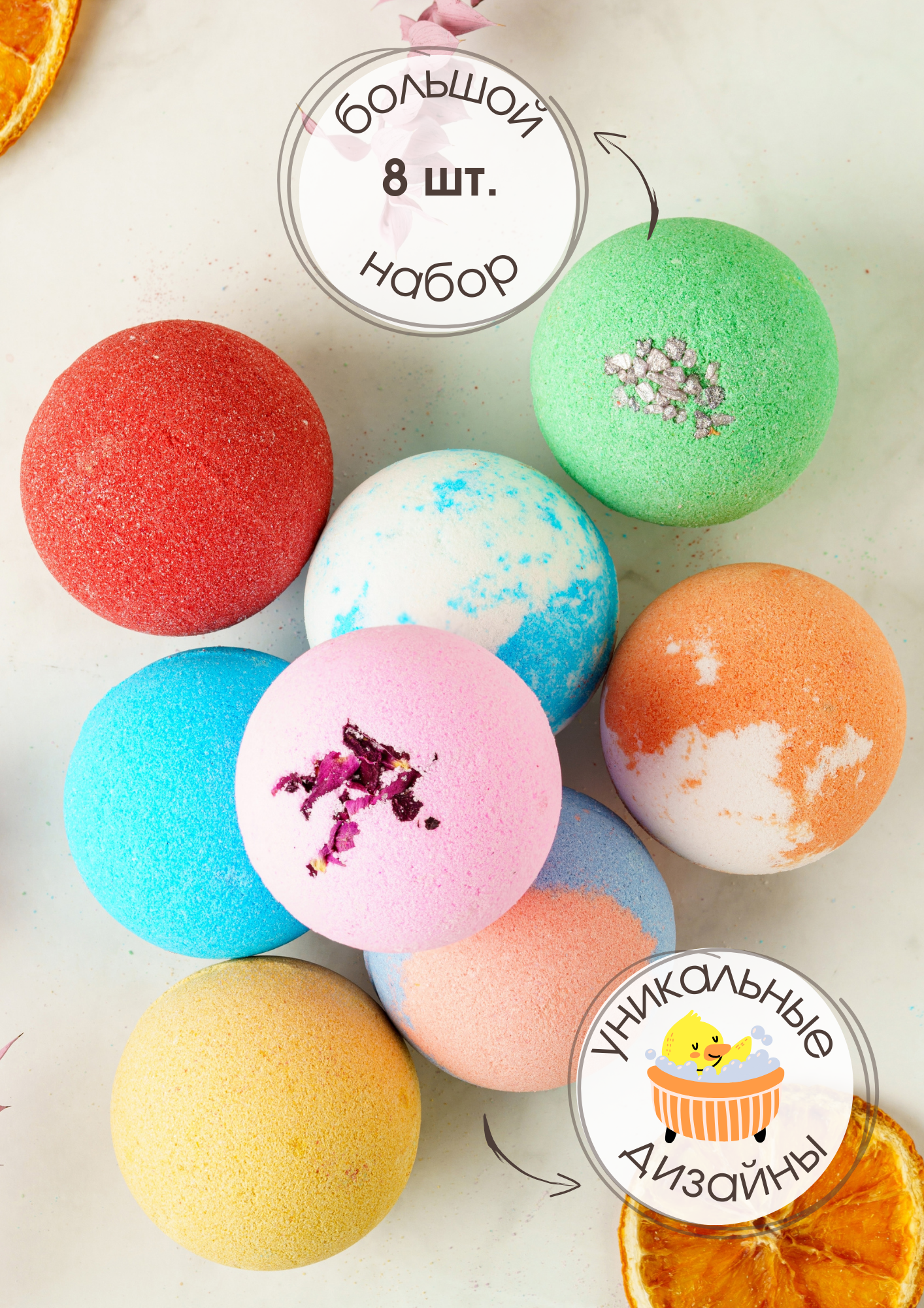 Ароматные бурлящие бомбочки для ванны детские набор 8 штук. Готовый подарок. Подарочный набор. Вес 640 гр.