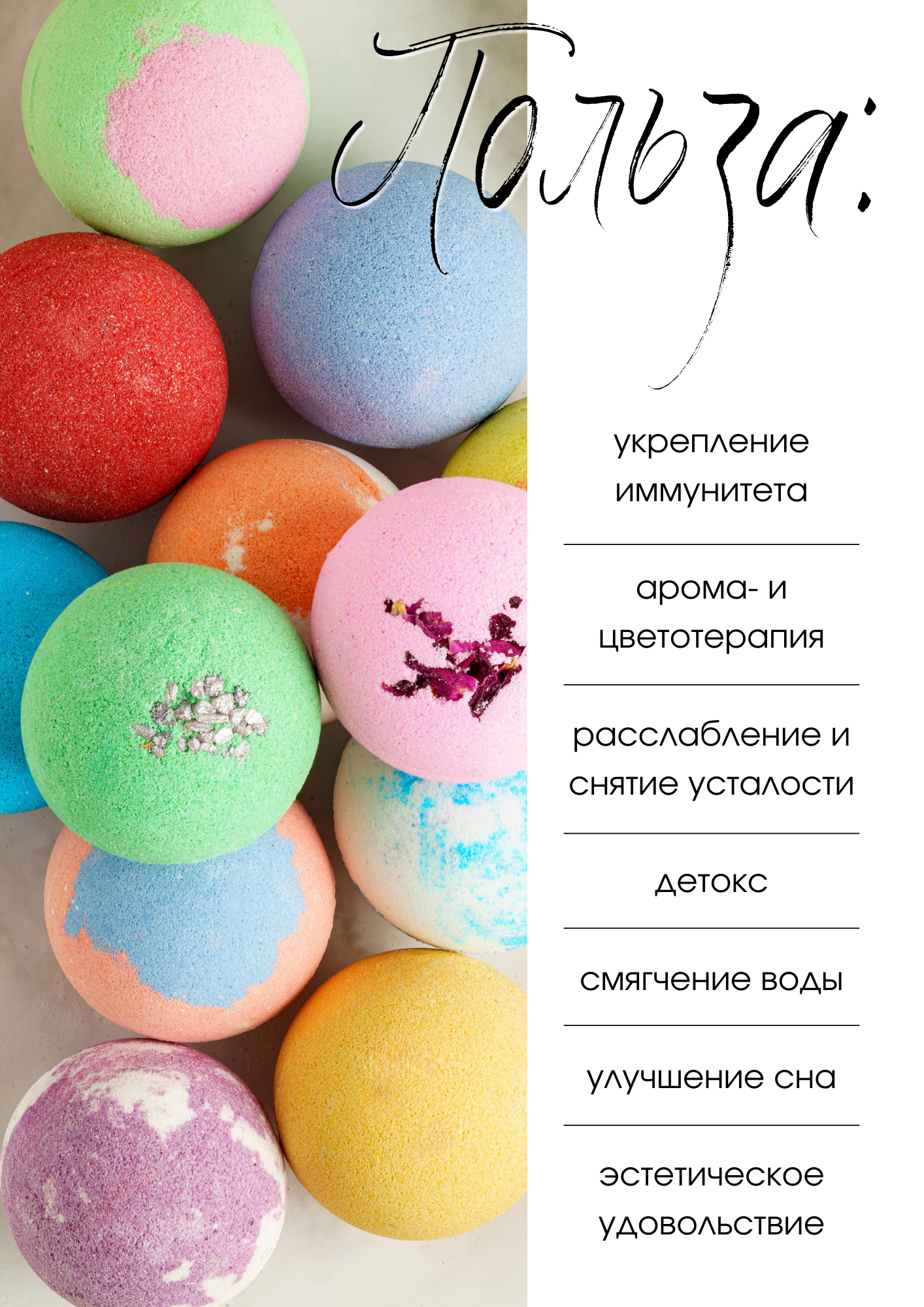 | Способ применения | В теплую воду опустите одну или несколько бомбочек. Дождитесь растворения. Принимайте полезную ванну 15-20 минут. |