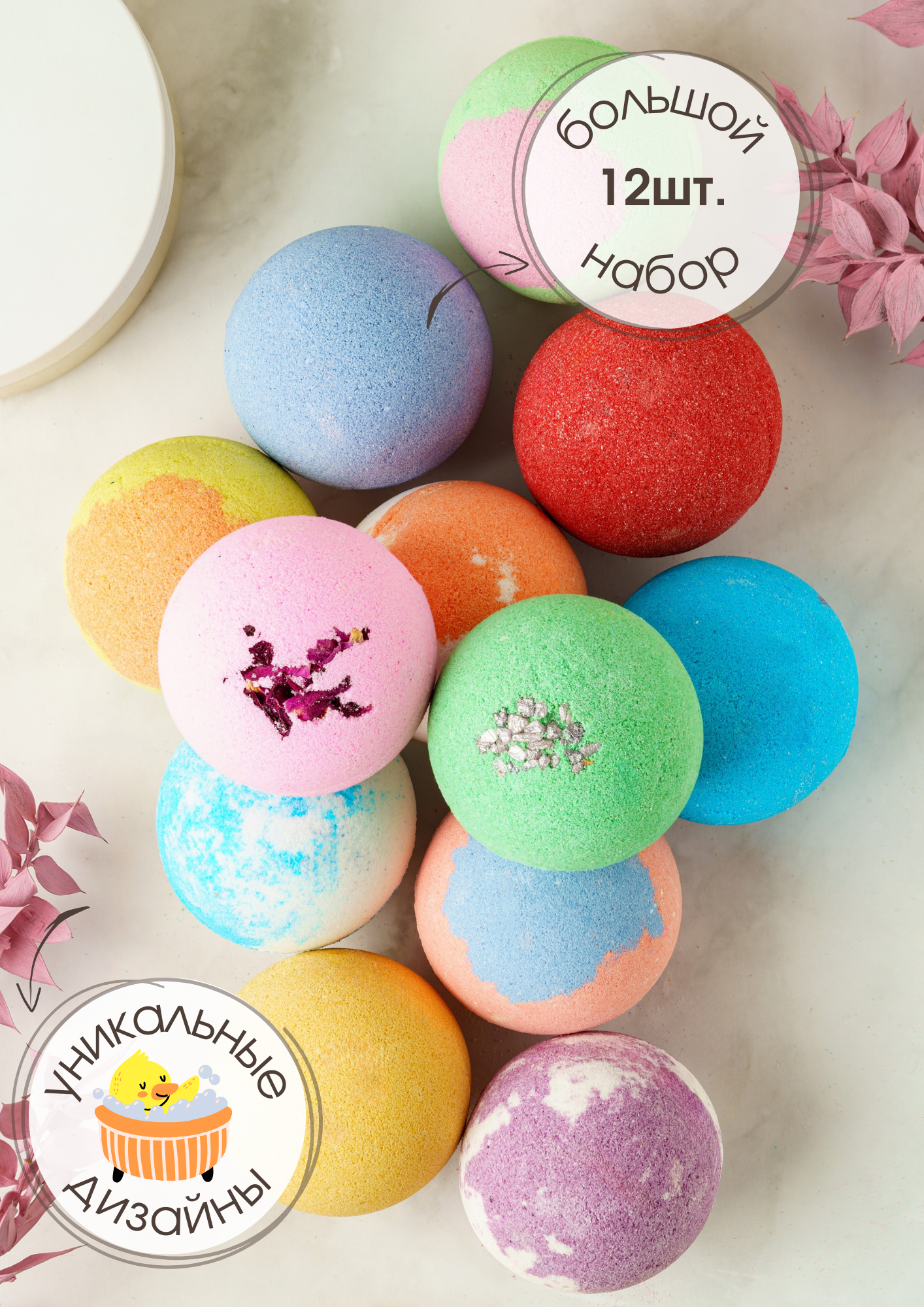 Ароматные бурлящие бомбочки для ванны набор 12 штук. Подарочный набор, готовый подарок. Вес 950гр.