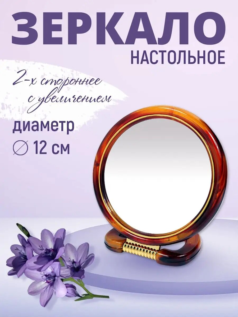 Зеркало косметическое настольное круглое двустороннее разного увеличения 13 см интересное: