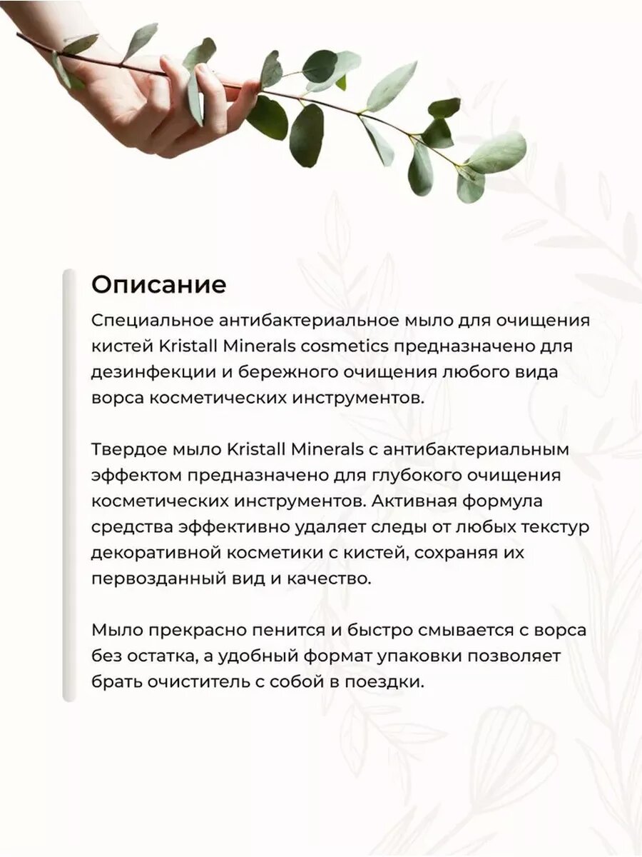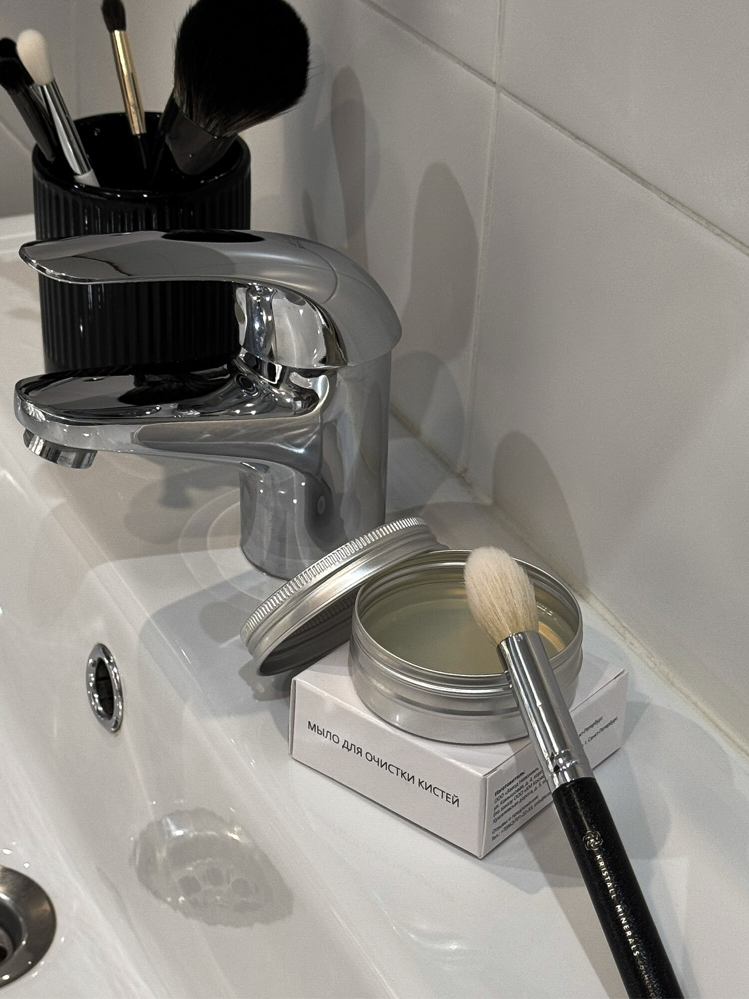 Антибактериальное мыло для очистки макияжных кистей Kristall Minerals cosmetics интересное: