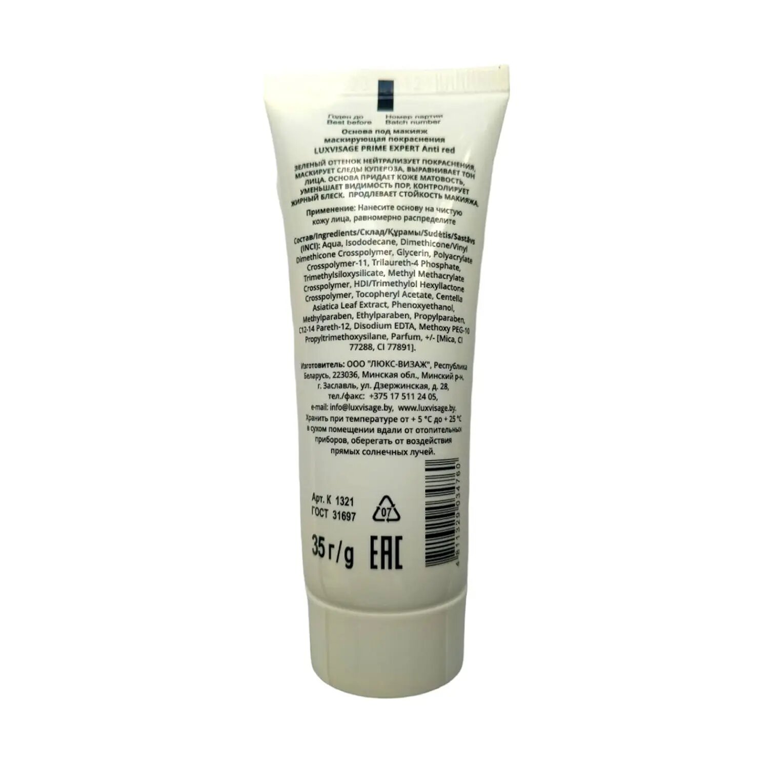 Основа под макияж LUXVISAGE PRIME EXPERT ANTI RED маскирующая покраснения (зеленая)
