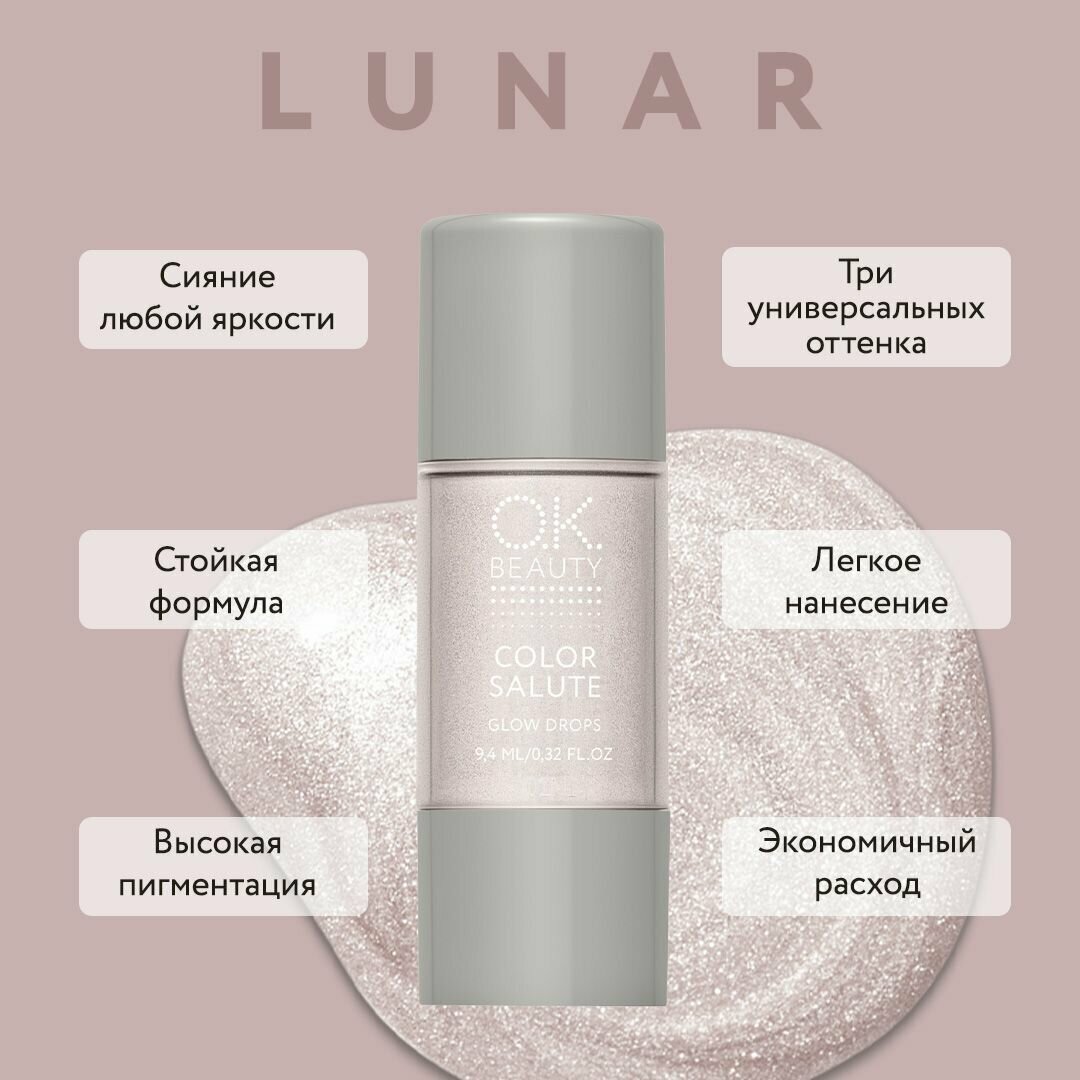 Купить O.K.BEAUTY Хайлайтер для лица и тела Color Salute Glow Drops, 9,4 мл, Lunar