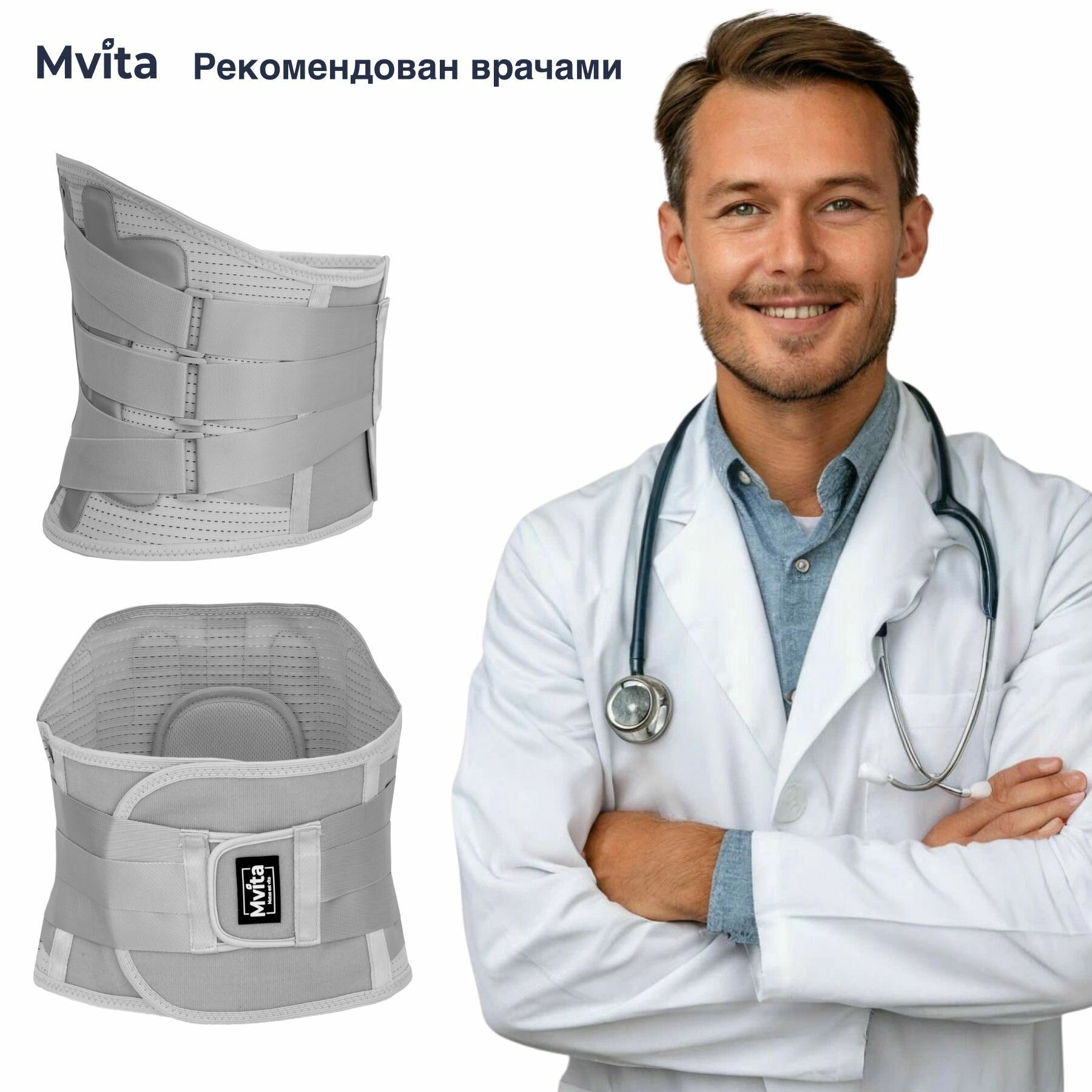Корсет для спины ортопедический пояснично-крестцовый с 3-х ступенчатой степенью фиксации - р.M ( обхват талии 71-78 см), серый