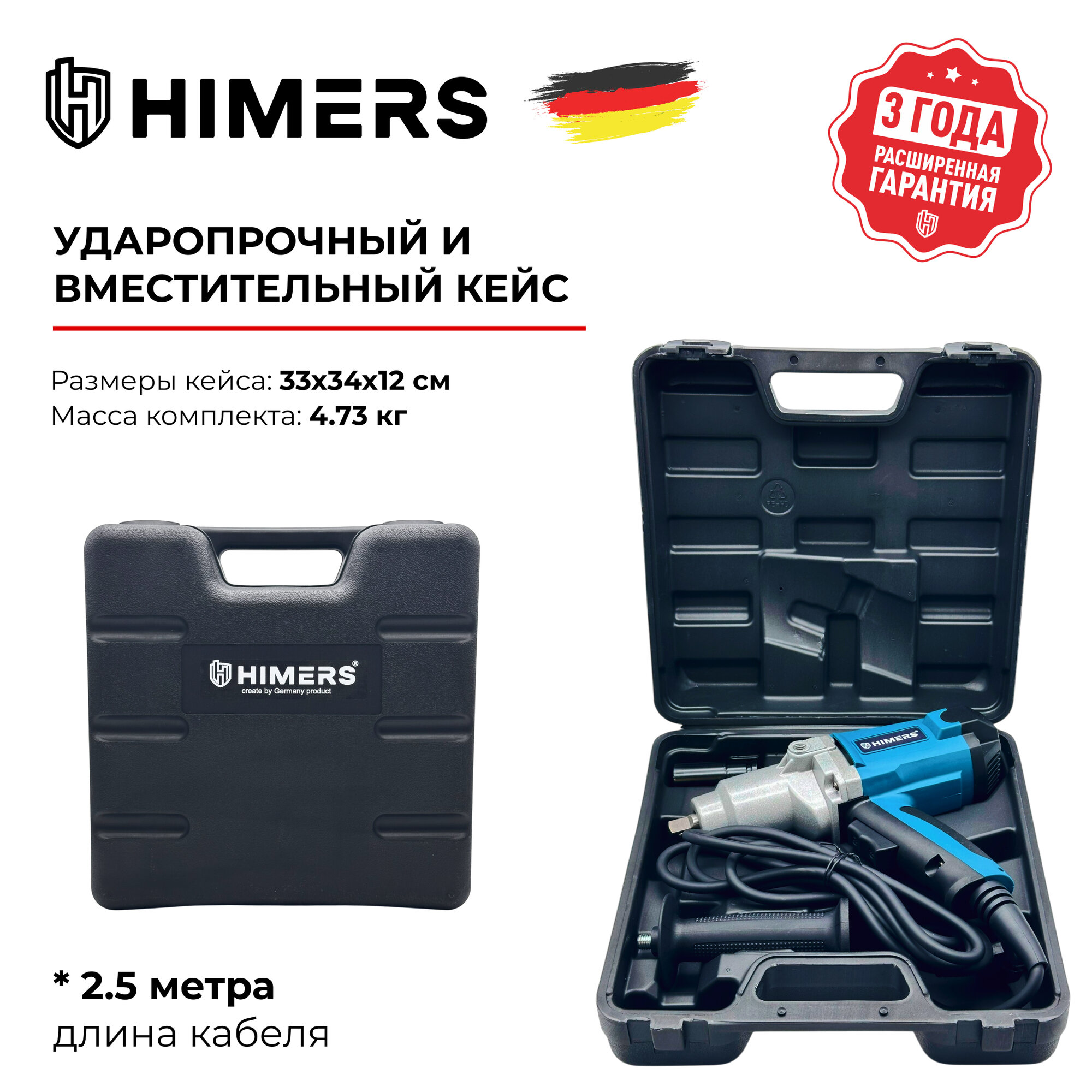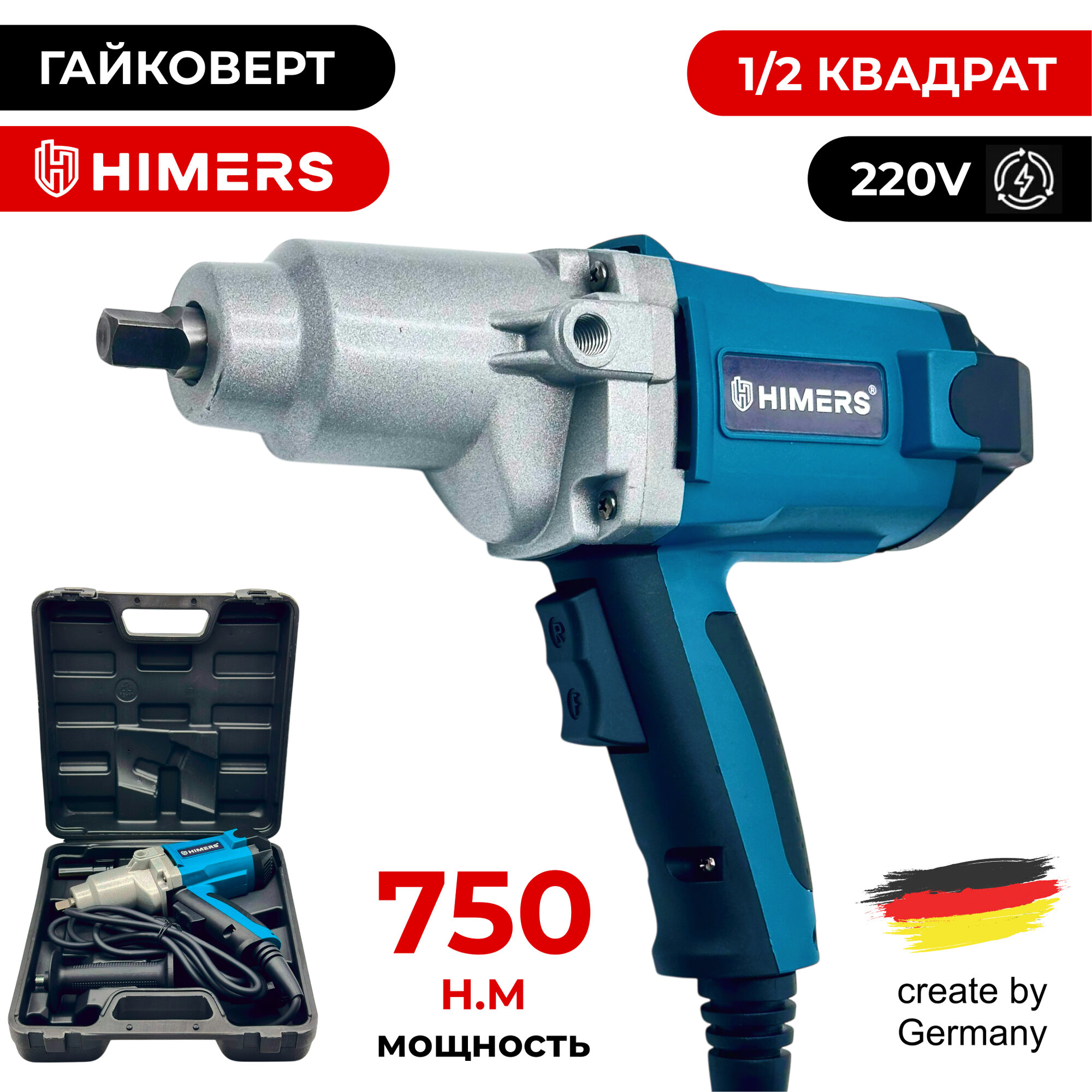 Купить 750 Н.М. Ударный гайковерт HIMERS MT750B с рукоятью , сетевой 220V / Кейс / для закручивания, квадрат 1/2
