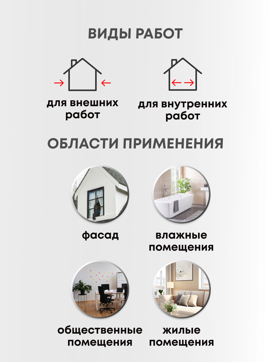 | Применение | для внутренних работ / для наружных работ |