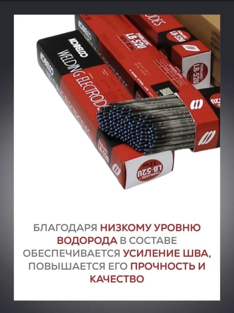 Электроды сварочные Kobelco LB-52U, диаметр 2.6 мм, вес 5 кг