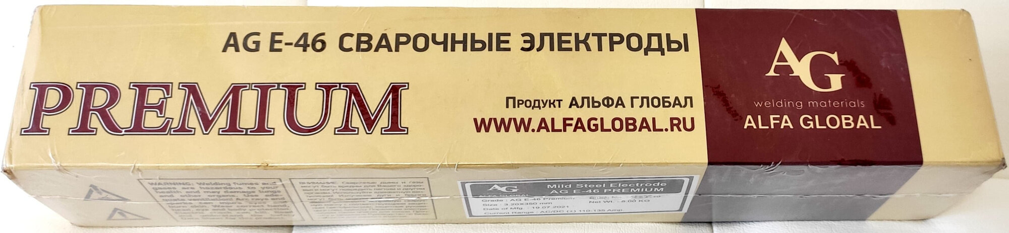 Электроды AG E-46 Premium 2.5x350 мм, 5 кг, рутиловые, Индия