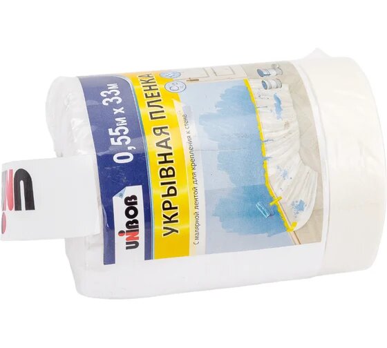 Купить Пленка защитная Unibob, с малярной лентой, 0,55 x 33 м