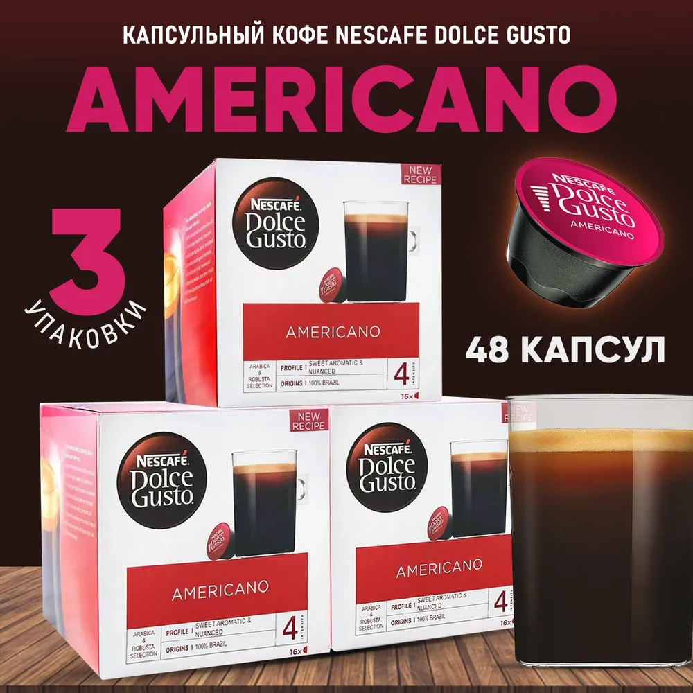 Купить Кофе в капсулах Nescafe Dolce Gusto Americano, 48 капсул (3 уп х 16 шт), американо