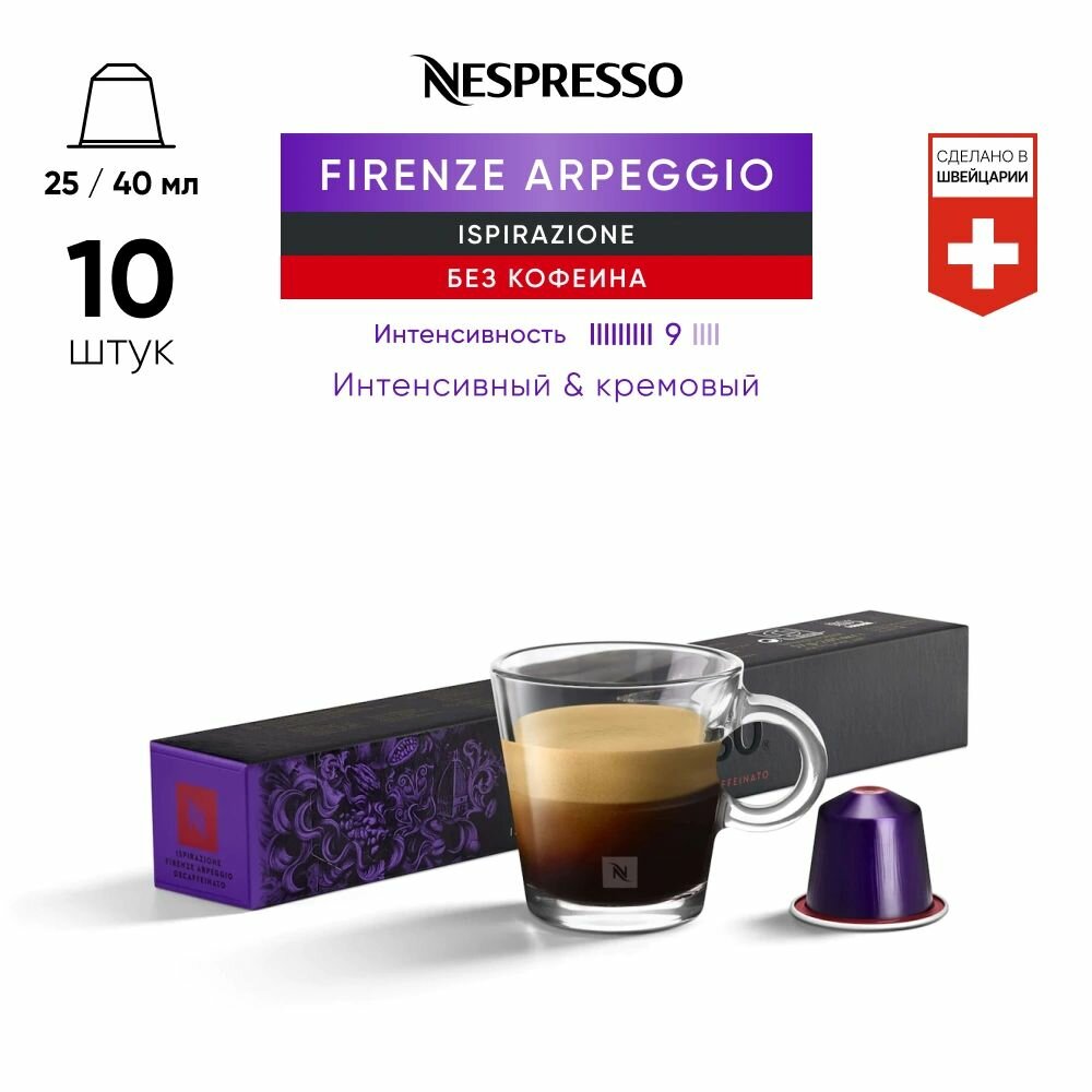 Кофе Оригинальные капсулы Nespresso Decaffeinato Firenze Arpeggio Ispirazione для кофемашины Nespresso Original 10 капсул 1 упаковка