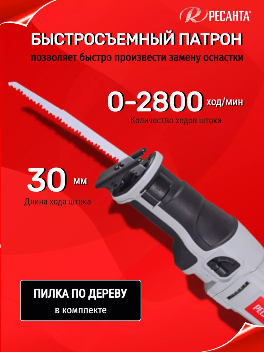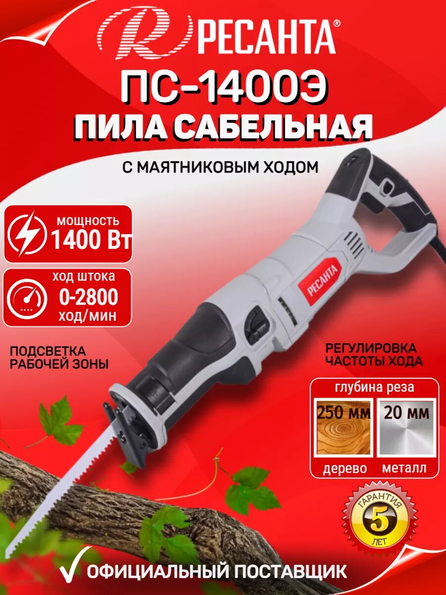 Сабельная пила сетевая Ресанта ПС-1400Э , 1.4 кВт, 2800 ход/мин интересное: