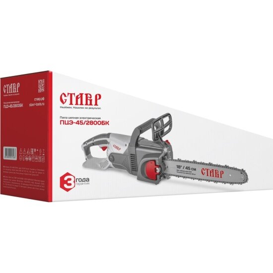Электрическая пила СТАВР ПЦЭ-45/2800 БК, бесключевая регулировка натяжения, 45см