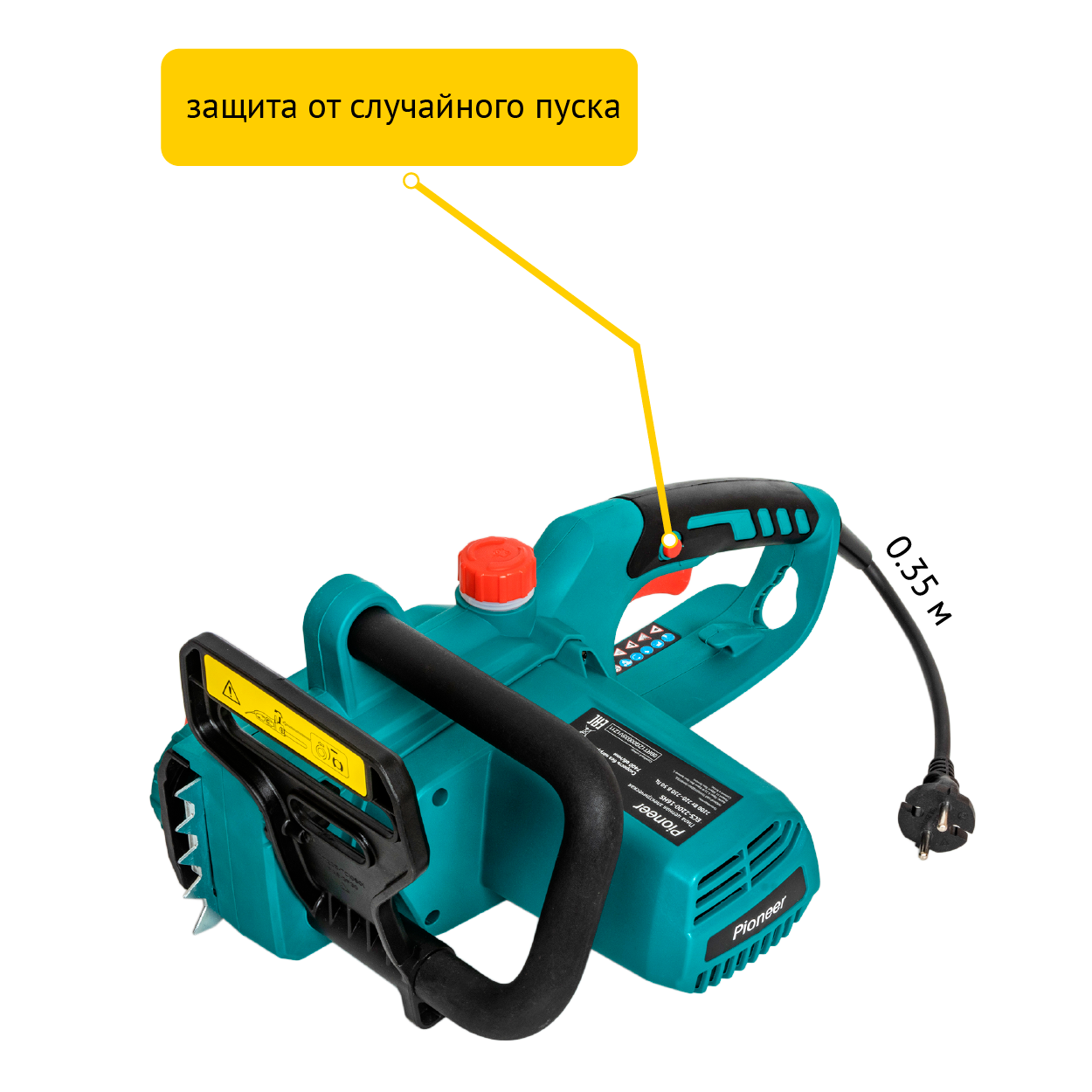Пила цепная сетевая Pioneer, длина шины 40 см, шаг цепи 3/8 дюйм, 57 звен, ECS-2200-16HS, 220-230 В, 64 см, 19736 интересное: