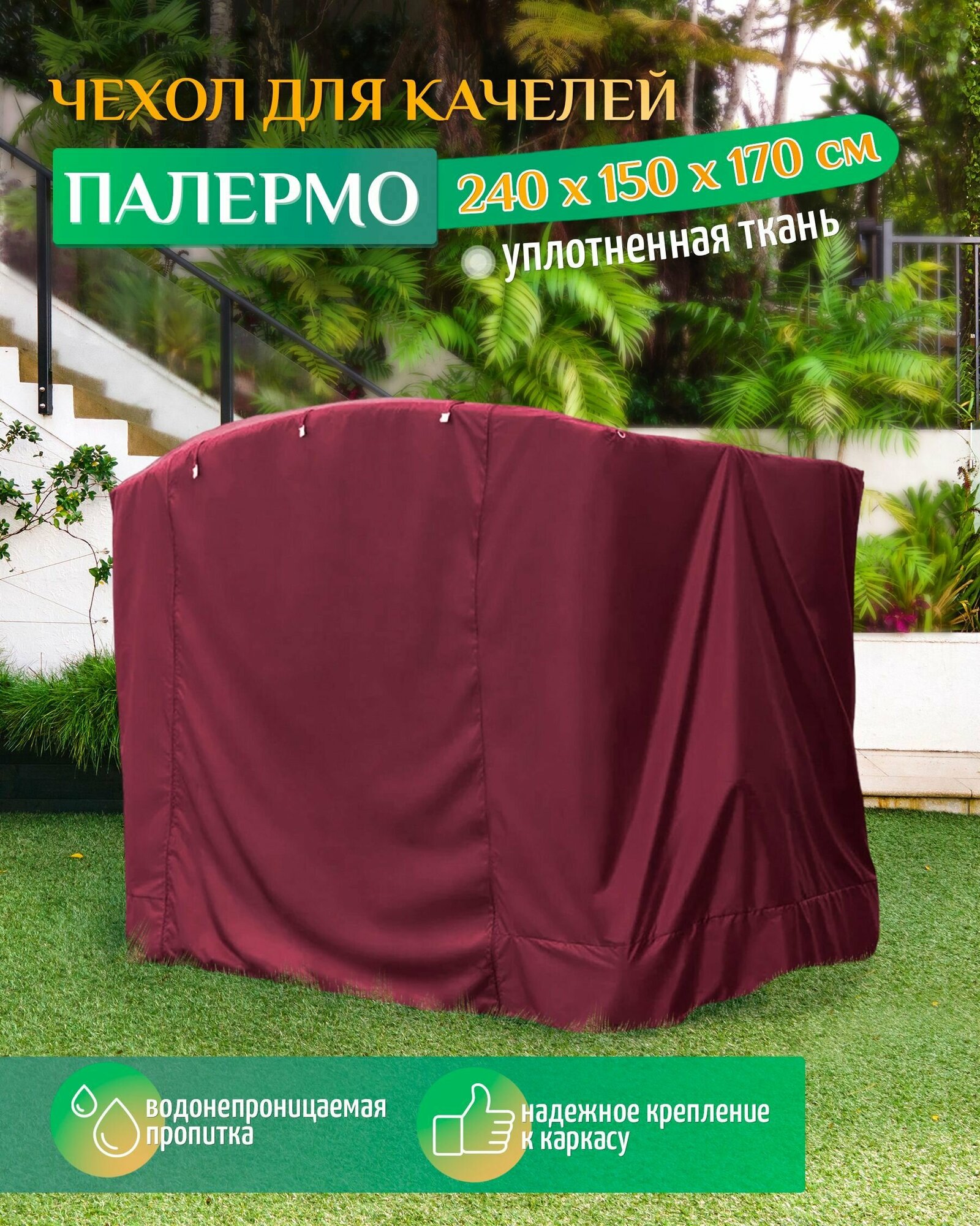 Ниже Вы можете прочитать отзывы на Чехол для садовых качелей Палермо (240х150х170 см) бордовый, ознакомится с подробными характеристиками, посмотреть интересные обзоры и фотографии на Чехол для садовых качелей Палермо (240х150х170 см) бордовый.