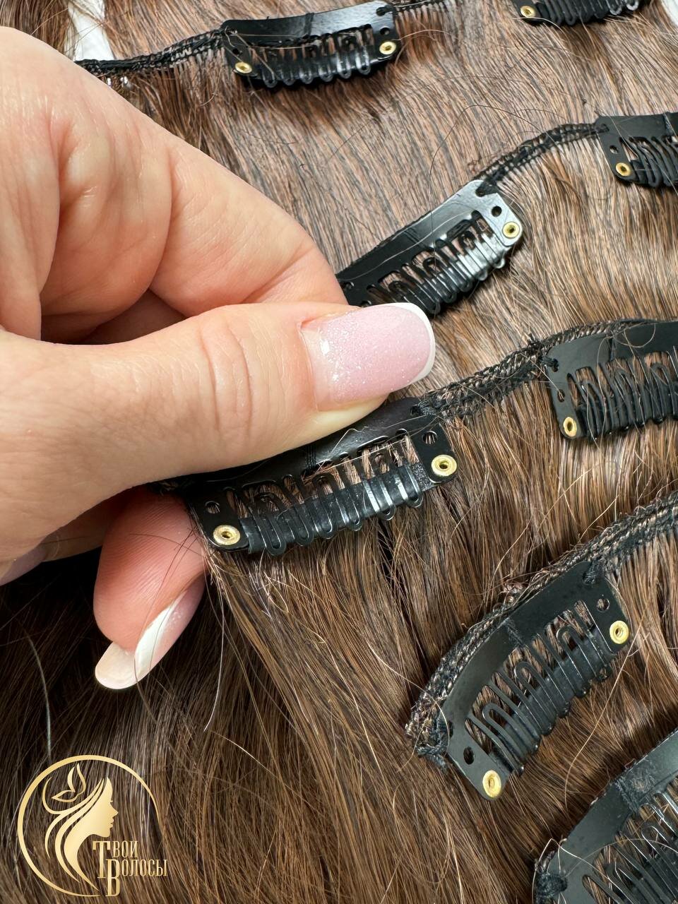 Накладные волосы, пряди на заколках-клипсах, 2/30 тёмно-русый