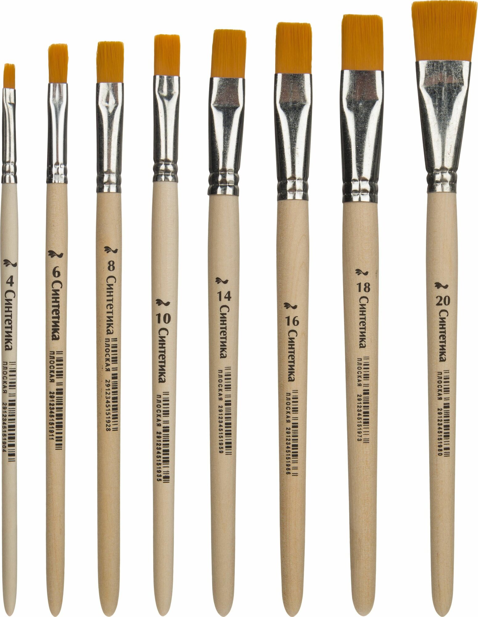 Набор кистей синтетика плоские 5 штук (№2,4,6,8,10), в блистере 7711371