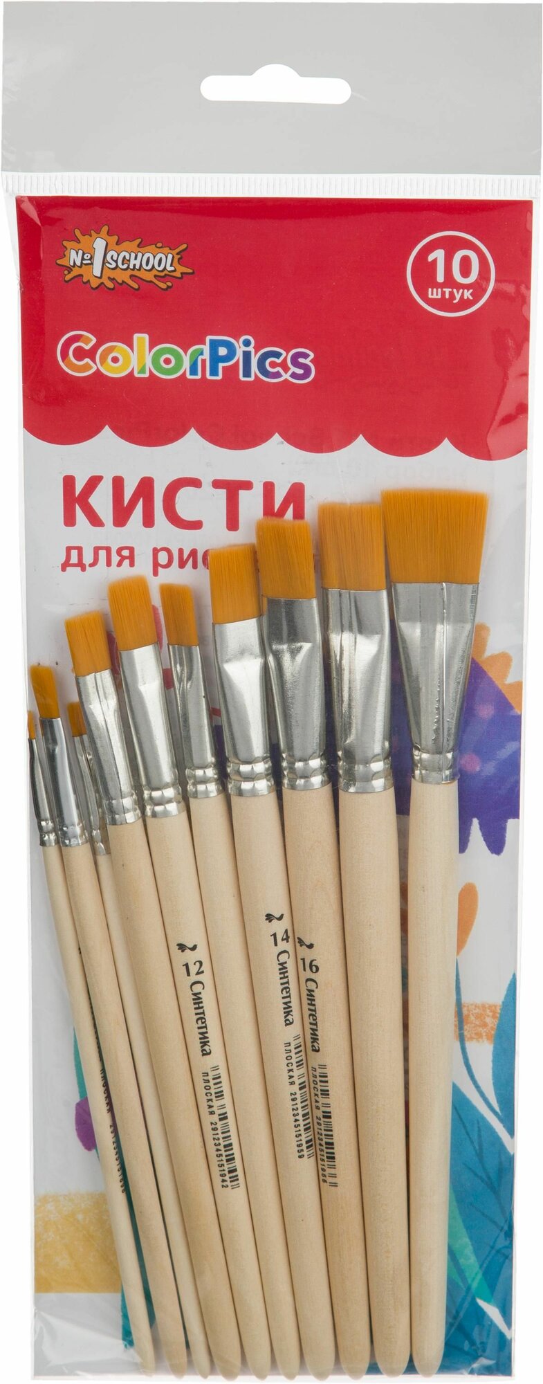 Кисти №1 School "ColorPics", пони №1, 3, 4, 5, синтетика круглые №3, 5, плоские №4, 6, щетина плоские №4, 6, 10 шт
