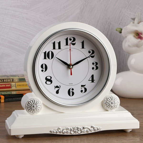 Часы настольные Рубин "Берта", 30х26 см, корпус белый, с серебром (3026-004)
