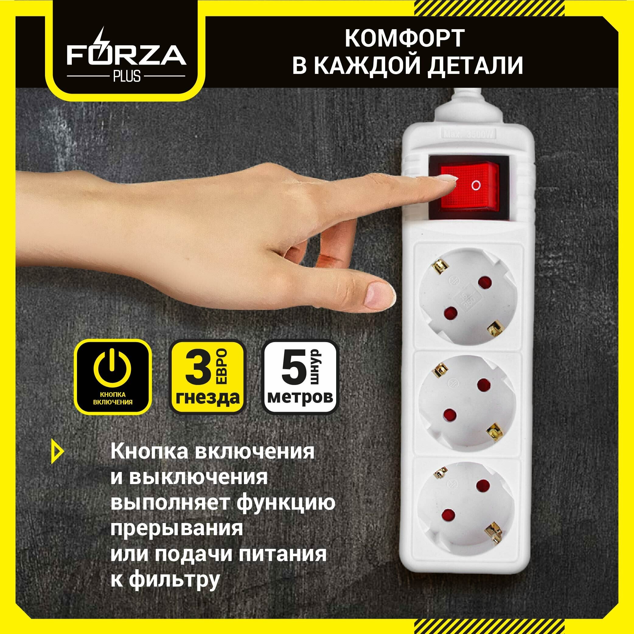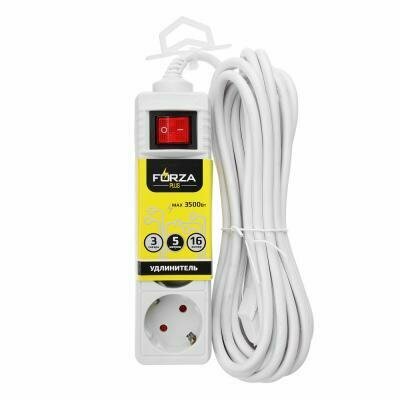 Удлинитель 3 гнезда FORZA PLUS 1,5кв.мм 5м.с заземлением, выключателем, евро, 16А, 3500ВТ интересное: