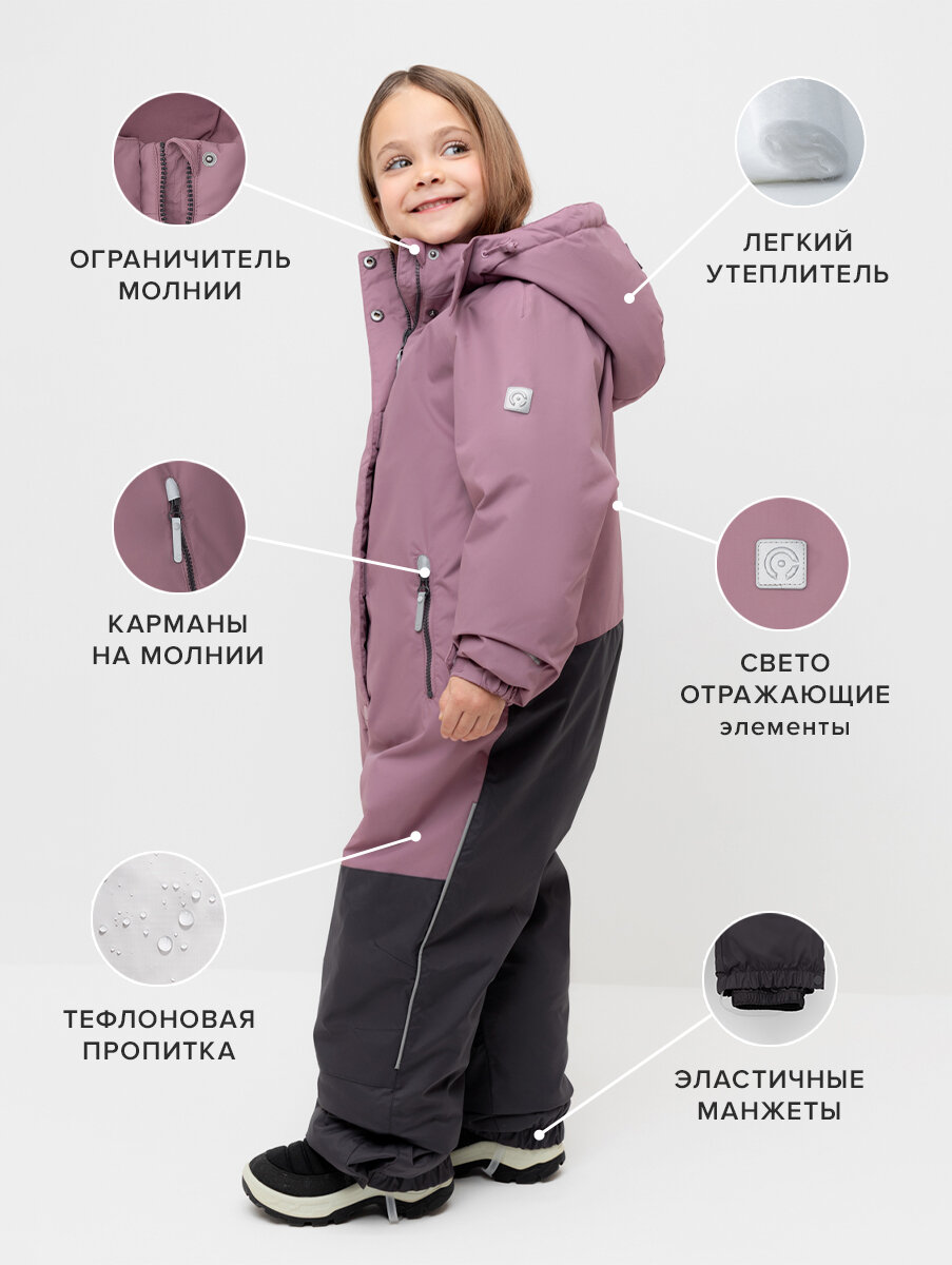 Комбинезон зимний мембранный для девочки, Crockid ВК 60122/1 ГР р 110-116/60/54