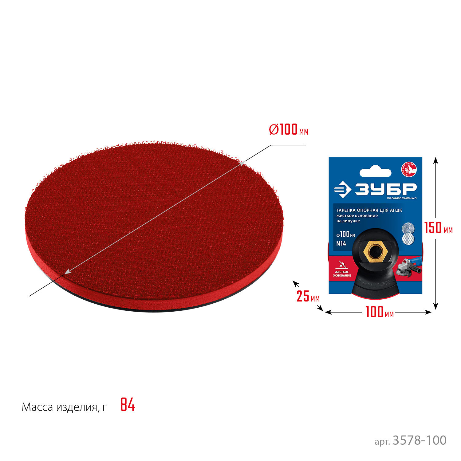 Тарелка опорная для УШМ под АГШК ЗУБР d 100 мм, М14, на липучке, пластиковая, Профессионал интересное: