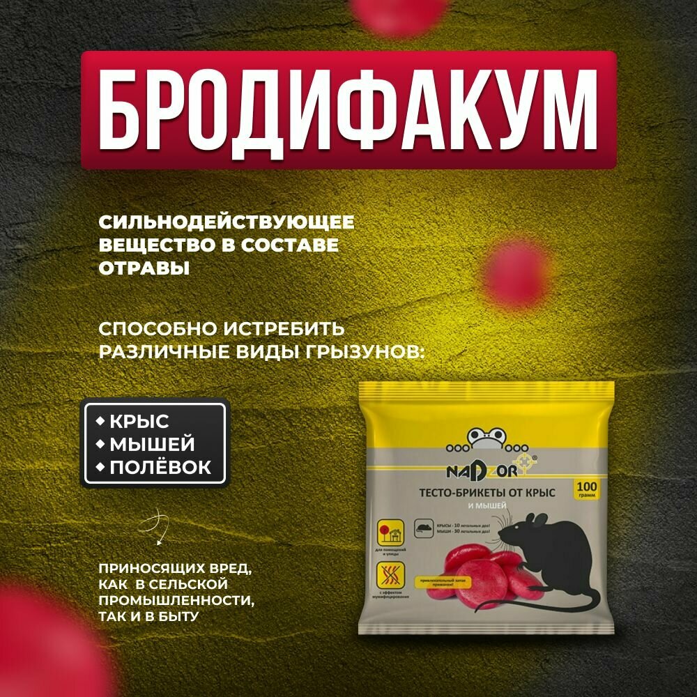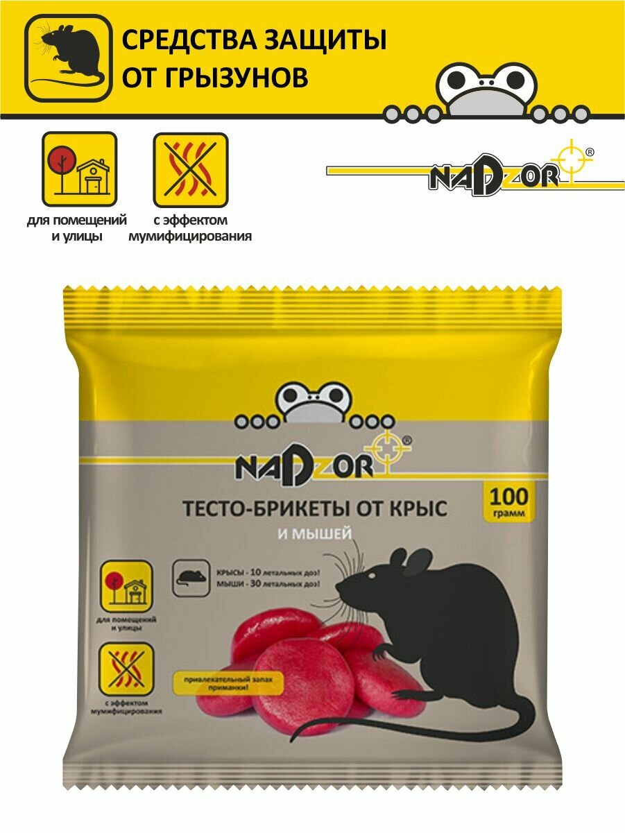 Родентицид Nadzor от крыс и мышей, тесто-брикет, 100 г