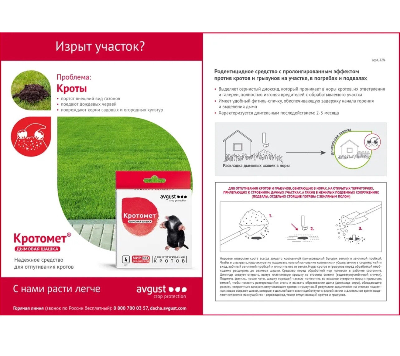 Средство для отпугивания кротов и грызунов на участке Кротомет (Август) 4 шт 30 гр интересное:
