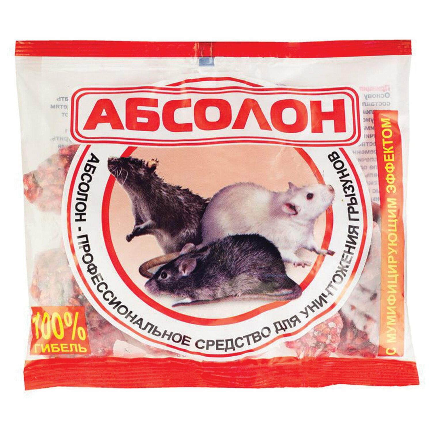 Приманка зерновая для уничтожения грызунов мумифицирующая 100 г, абсолон, пакет, АЛП100