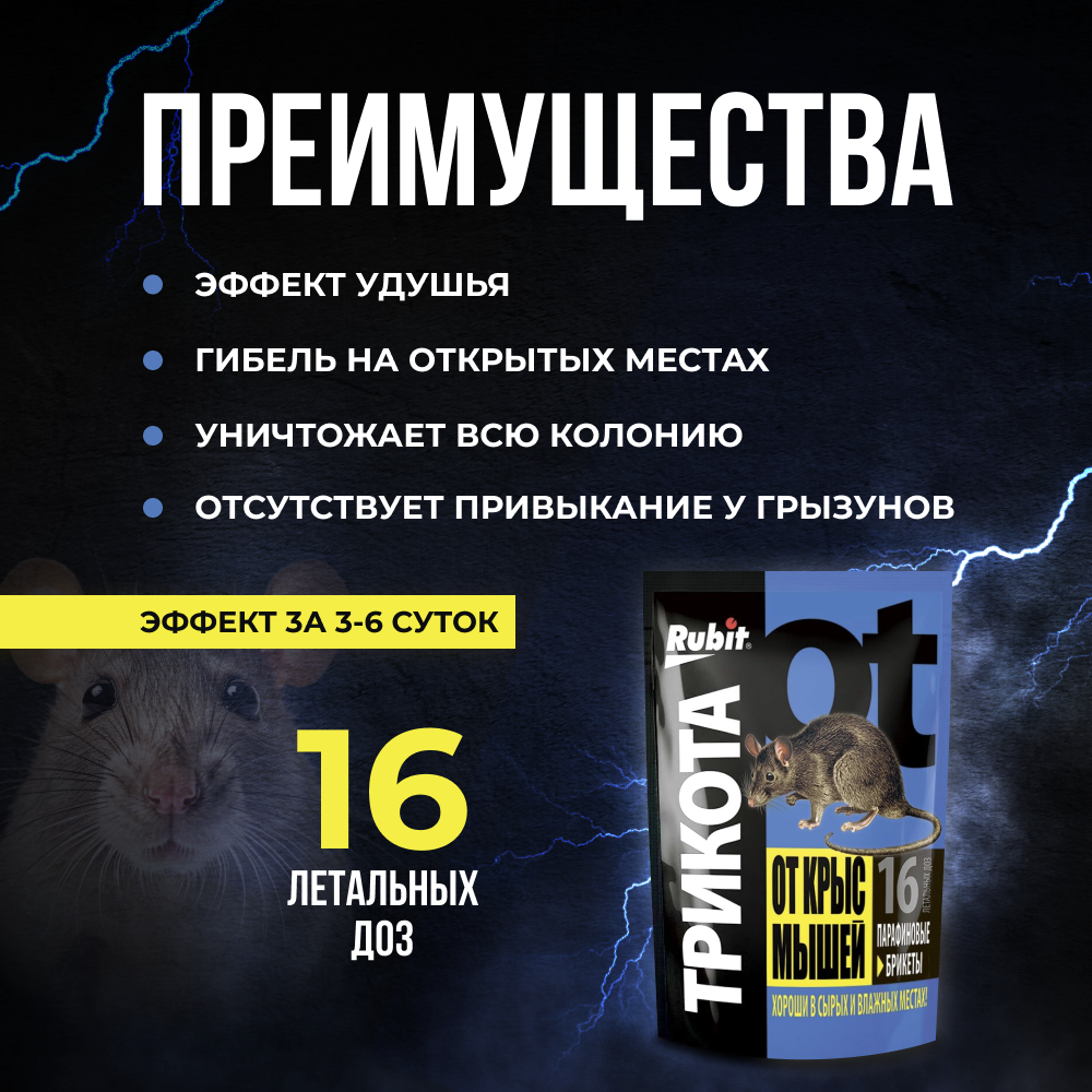 Средство от грызунов Rubit ТриКота парафиновый брикет 8 доз 80 г