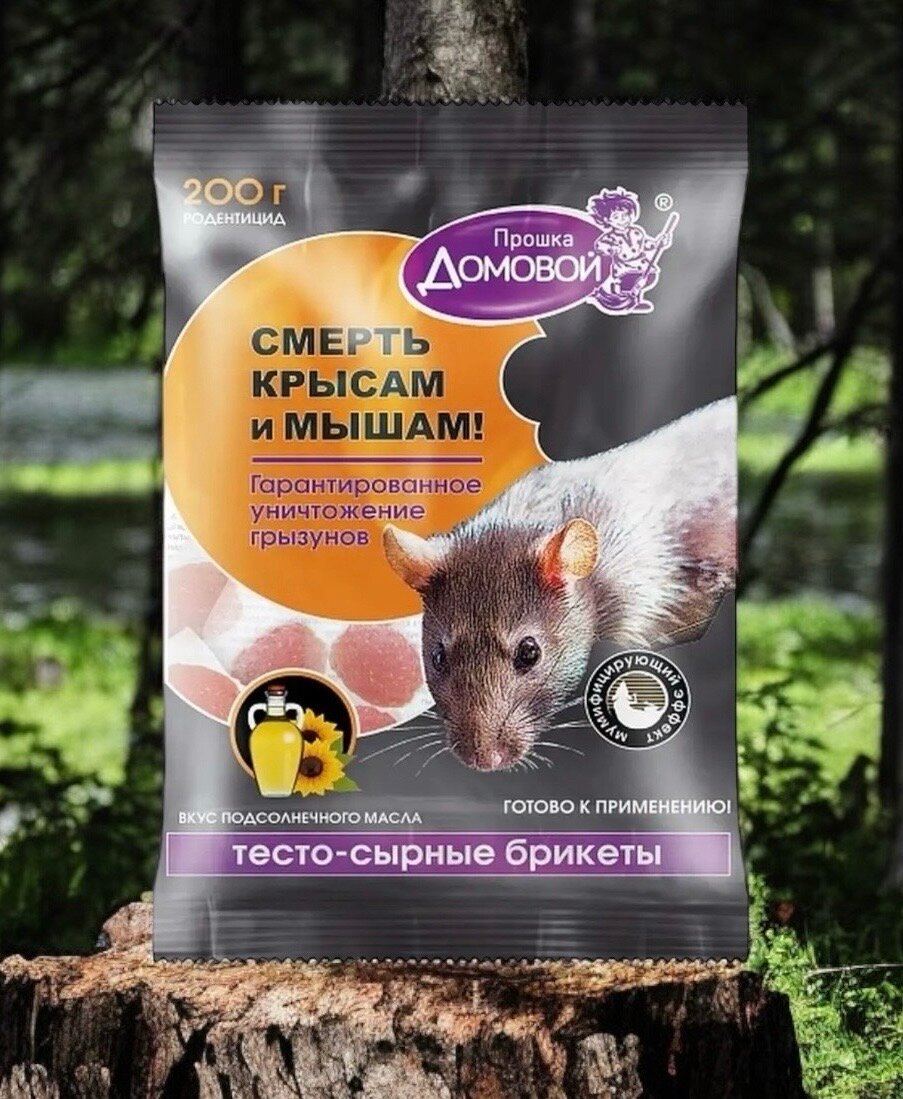 Отрава для крыс и мышей, 200г. Сырный брикет, мумифицирующая. интересное: